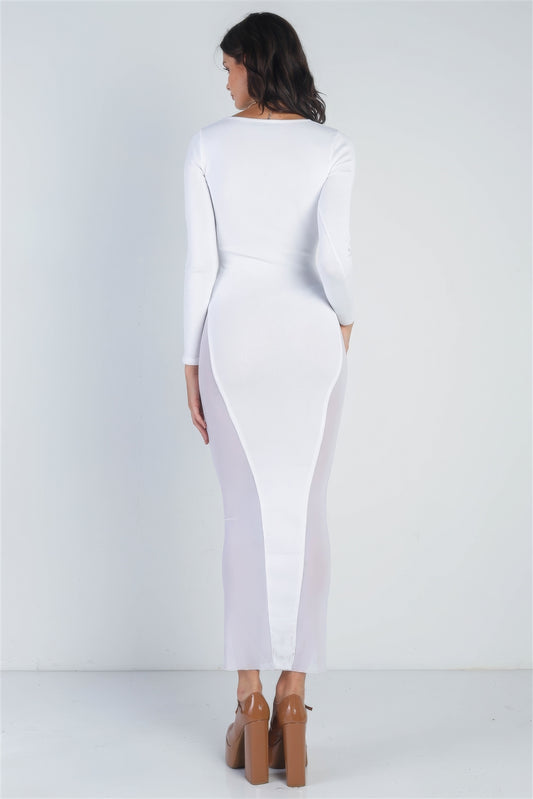 Cutout Bust Mesh Side Detail Long Sleeve Dress