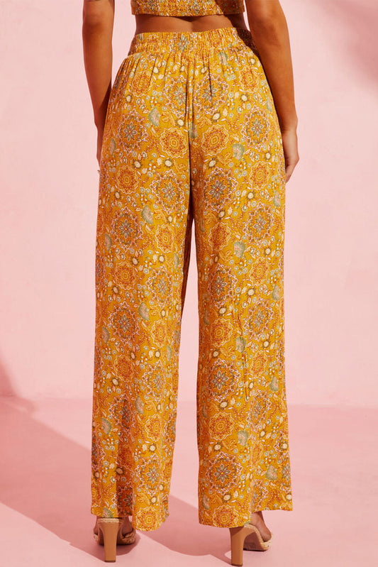 Printed Tie Waist Wide Leg Long Pants
