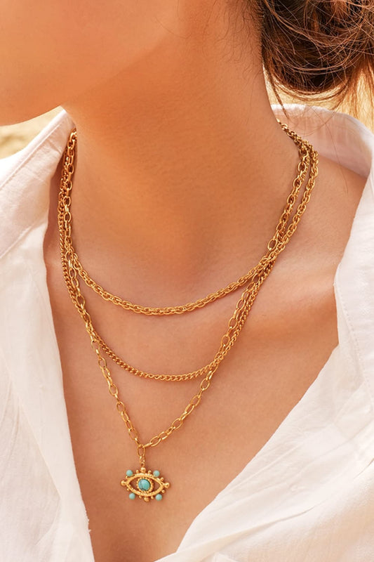 Synthetic Pearl Titanium Steel Three-Layered Necklace
