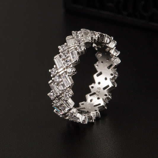 X Shape Inlaid Zircon 925 Sterling Silver Ring