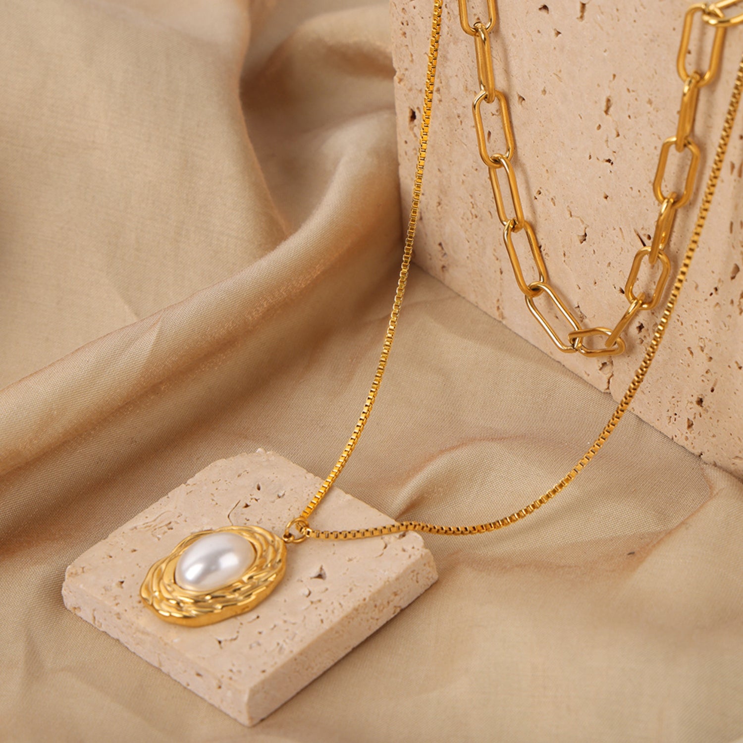 Inlaid Pearl Double-Layered Titanium Steel Necklace
