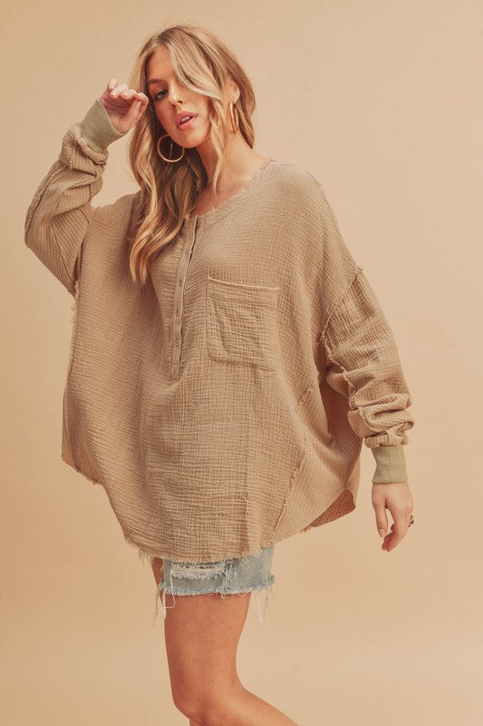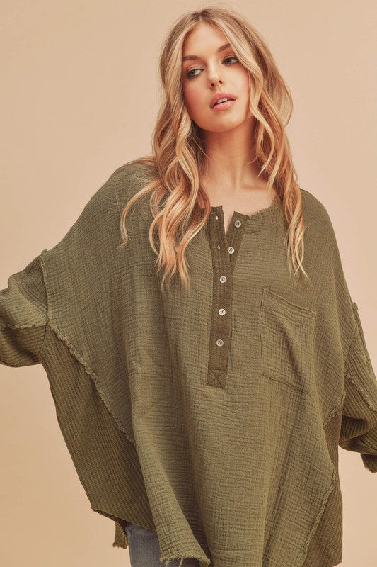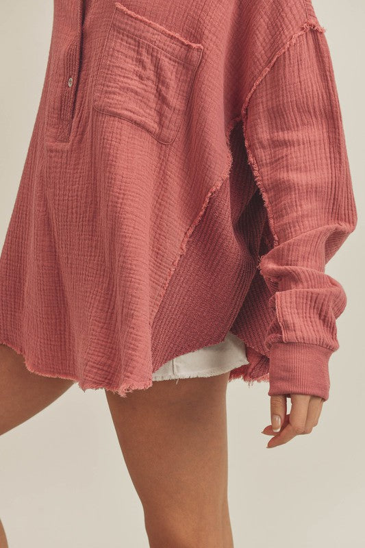 Stay comfy in our Majorie Top featuring a flowy cotton fabrication and effortless design with a button-up henley style with thermal contrasting.